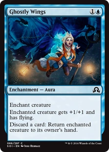 Enchanted creature gets +1/+1 and has flying. Discard a card: Return enchanted creature to its owner's hand. | |