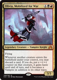 | 2016-04-08 | You decide whether to discard a card as the triggered ability of Olivia, Mobilized for War resolves. If you do, the rest of the ability’s effects happen before any player may take actions. |